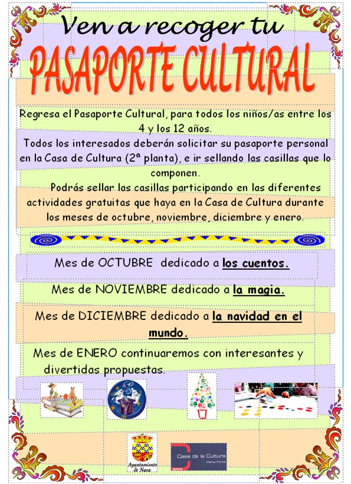 Como en años anteriores, este año 2013 vuelve el “Pasaporte Cultural”, en la Casa de Cultura “Marta Portal”: un programa de actividades gratuitas dirigido a niñ@s entre los 4 y los 12 años. Habrá un nuevo pasaporte que deberán completar con los sellos que ganarán al participar en dichas actividades.