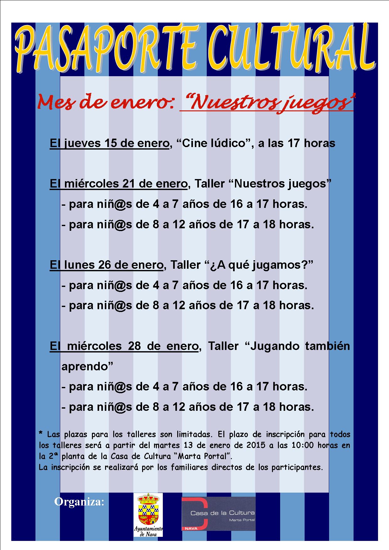 El Ayuntamiento de Nava continúa con su fantástica experiencia El Pasaporte Cultural, si bien también pueden realizarse las actividades que a uno le parezcan más interesantes sólo. Este miércoles habrá juegos, de hecho el taller se llama "Nuestros juegos".
