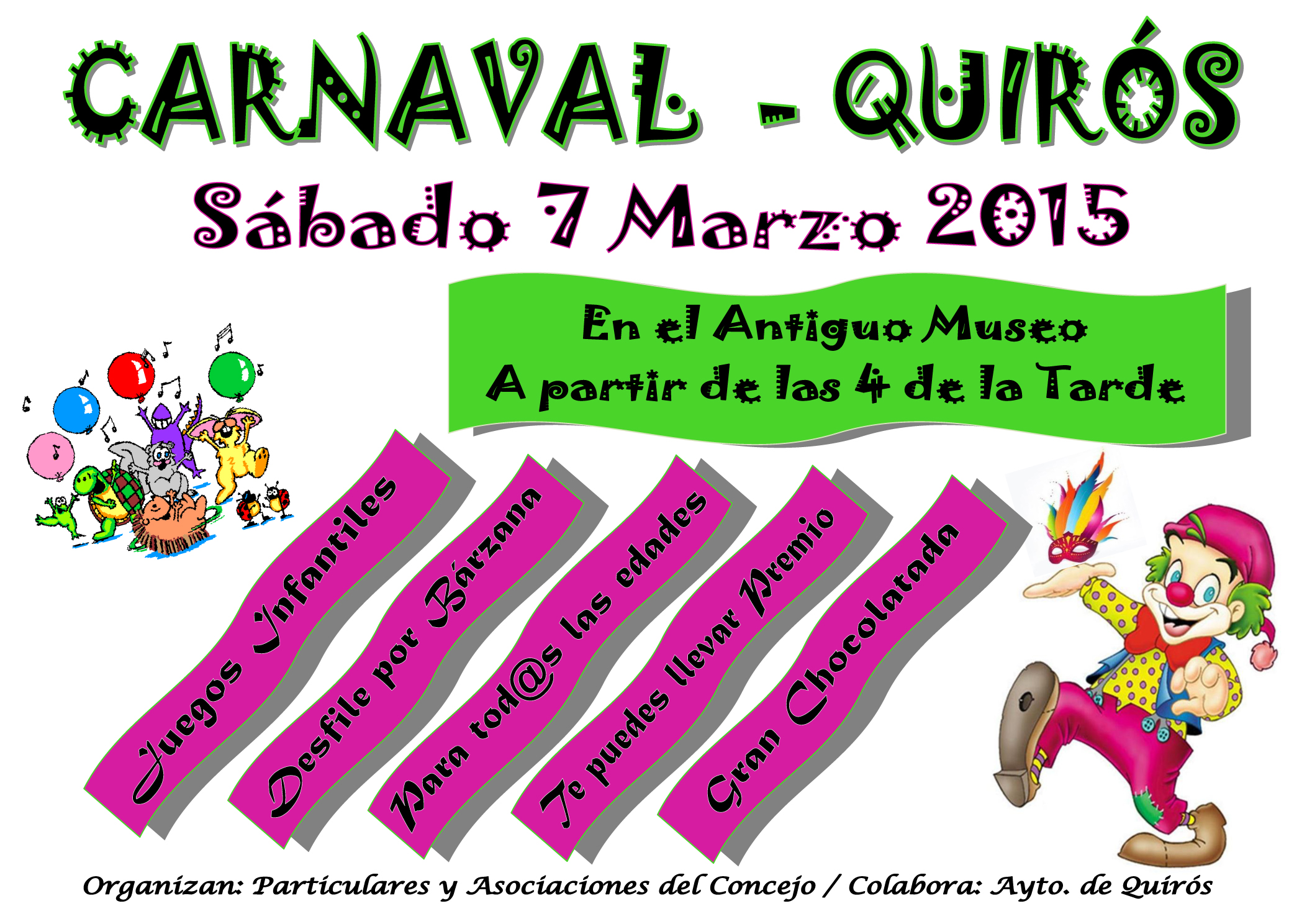 Que sí, que todavía tenemos carnavales para celebrar ... este sábado podremos hacerlo en Bárzana, en el concejo de Quirós, a partir de las 16:00 h., en el Antiguo Museo de Quirós nos esperan las asociaciones del concejo para celebrar juntos el Carnaval, tengas